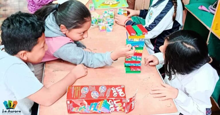 En el Centro La Aurora ofrecemos a diario espacios con materiales lúdicos para que los niños, niñas y adolescentes disfruten de momentos de recreación a través de juegos de mesa y actividades deportivas adaptadas a nuestros espacios.